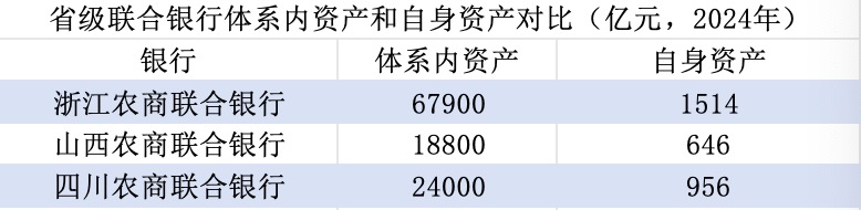 比如浙江农商联合银行系统内资产规模达到6.79万亿元(2024年末),但同期浙江农商联合银行资产规模仅有1514亿元。