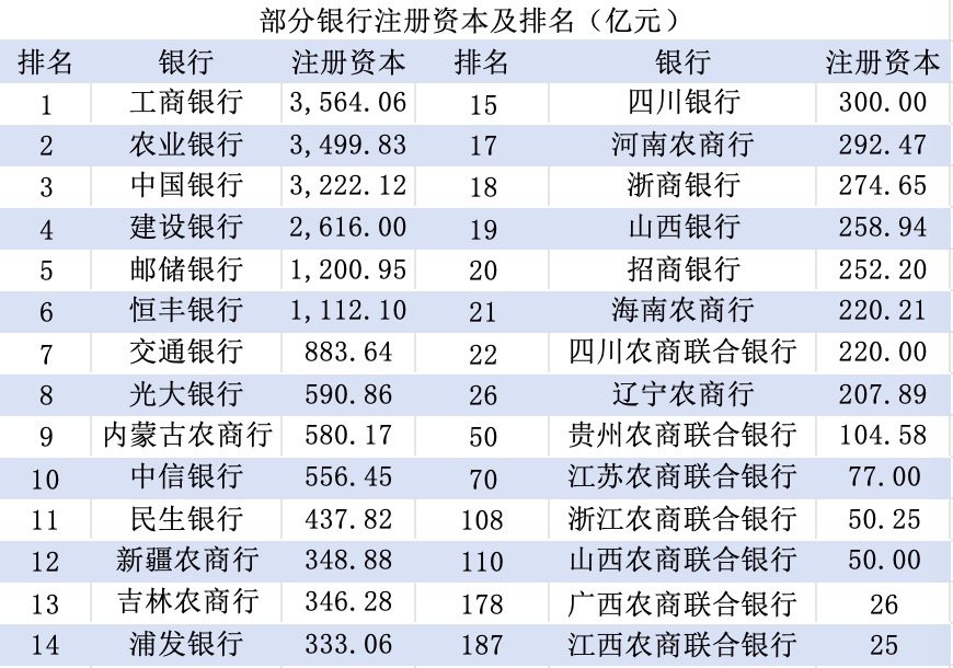 省级农商行和省级农商联合银行的不同还体现在注册资本上。