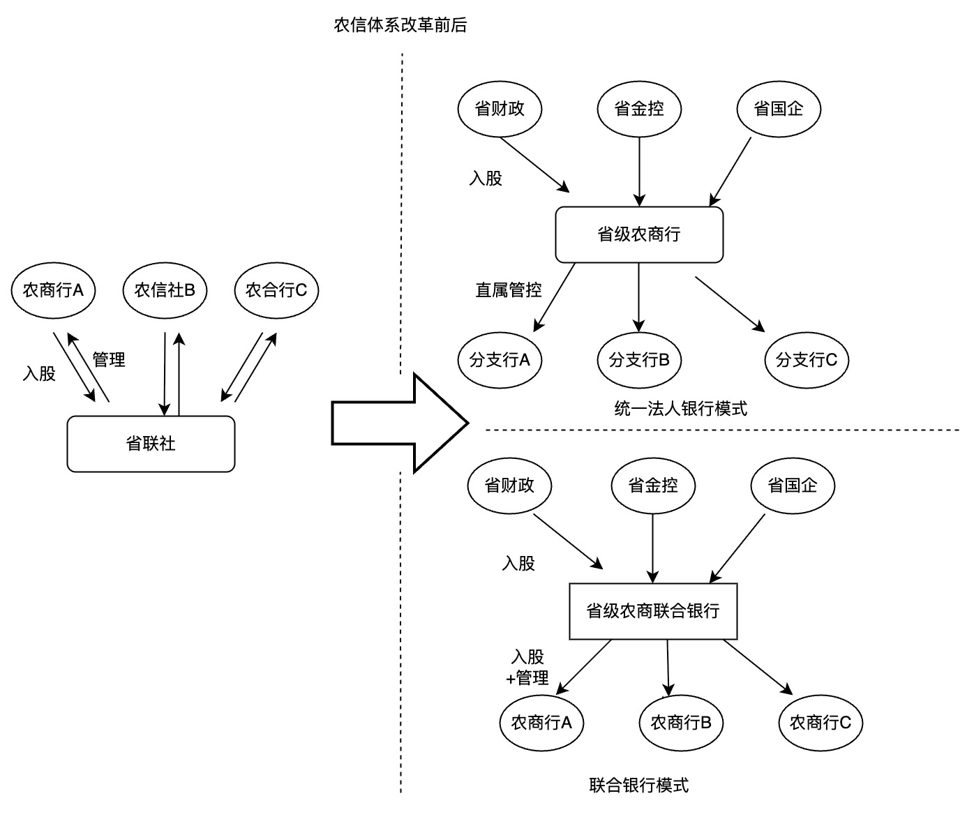 新一轮农信体系改革也将理顺治理机制作为重点。总体来看,其特点主要有二:一是省联社去行政化,成立省级农商联合银行或全省统一的法人银行;二是将股权关系调整为自上而下。